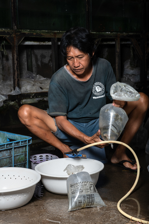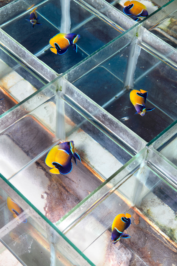Aquarium fish are the most popular pets after cats and dogs. There are more than three million in Switzerland, and 98% of ornamental marine fish are still caught directly in the wild today. • I have always been intrigued by aquaria: man-made fictional marine worlds contained in complex staging machines, like living cabinets of curiosities. • From local enthusiasts who dedicate a huge amount of time and money to creating specific ecosystems in their homes, to shops, to the largest wholesaler in Europe, I followed the trail all the way to fishermen in Indonesia, the biggest exporting country. I also met seahorse breeders, jellyfish exporters, boarder veterinarians and coral growers. • With this work, I want to showcase the intrinsic paradox of aquaria: the esthetic pleasure of building sophisticated reproductions of nature, the handling of living creatures for visual pleasure, and an industry that is a source of revenue for people in developing countries but also has a significant impact on the environment.